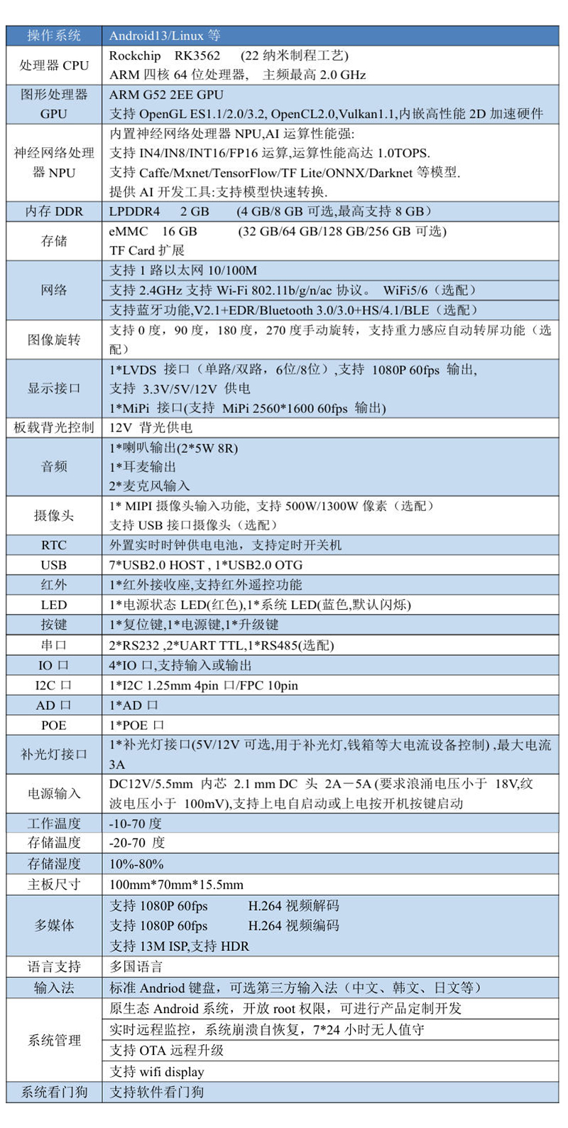 內存DDR R LPDDR4 2GB (4GB/8GB可選,最高支持8GB)