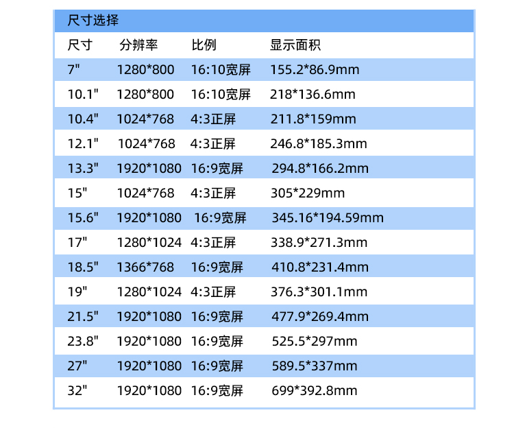 | 屏幕面板 | 工控A規(guī)屏 TFT面板 |