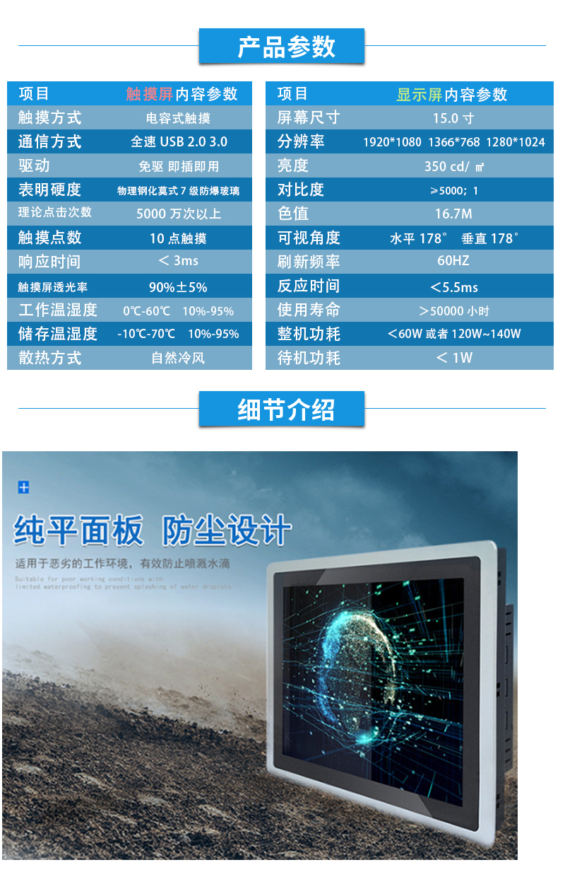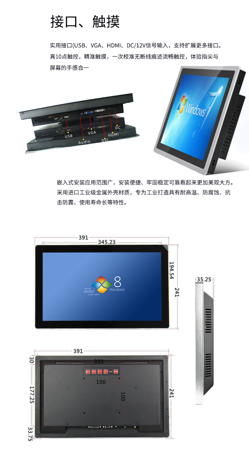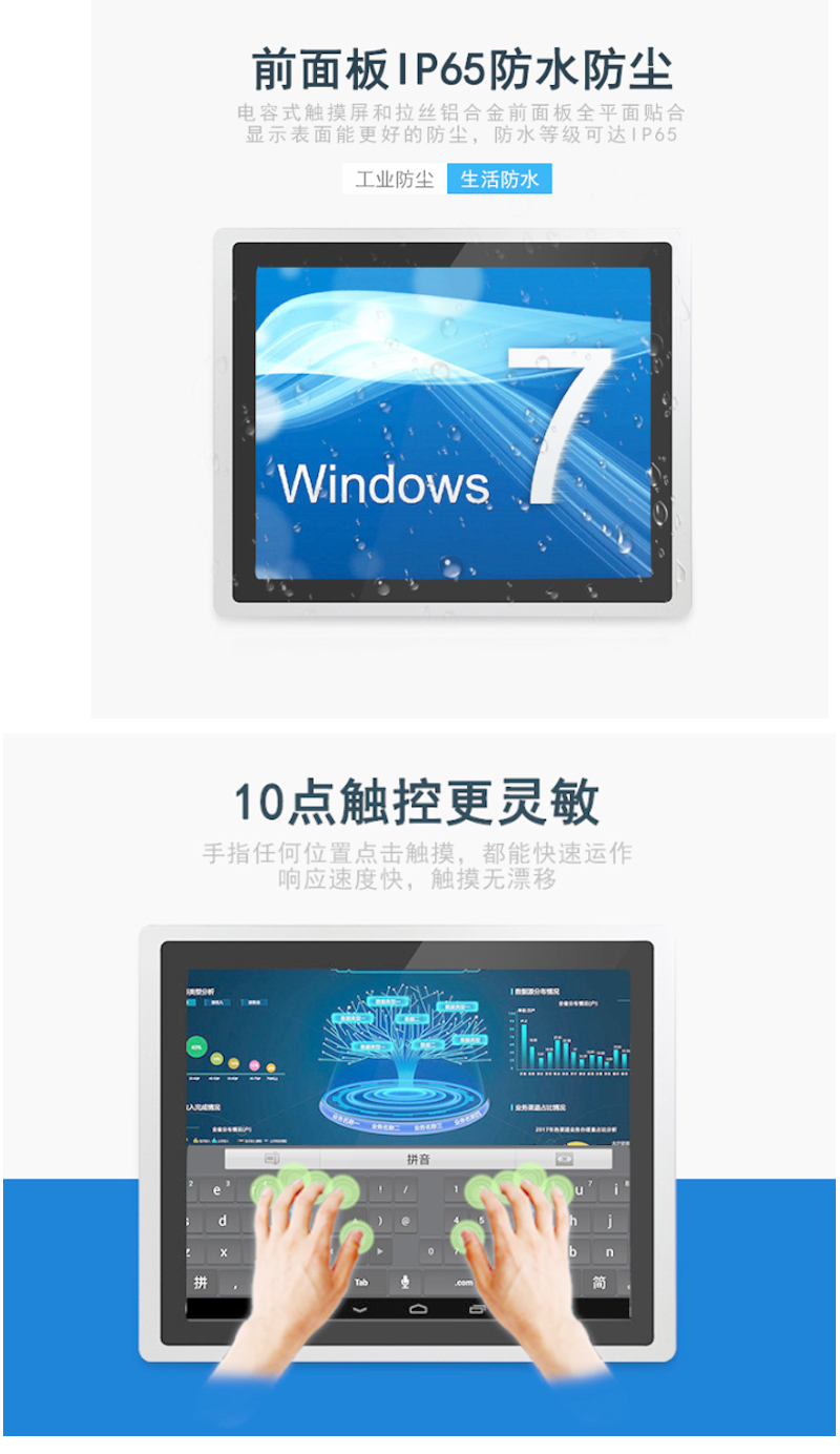 13.3寸工業一體機X86架構J1900防水防塵純平前面框支持二次開發
